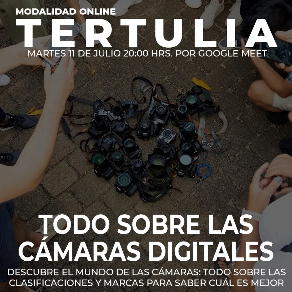 ¡TERTULIA: Explora el fascinante mundo de las cámaras fotográficas! Únete a nuestra charla donde aprenderás todo lo necesario para elegir la cámara perfecta, sobre las marcas y todo sobre los diferentes tipos de cámaras.